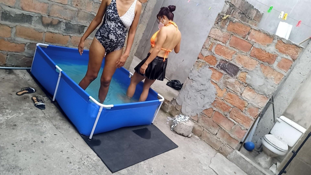 We put on swimsuits at the neighborhood pool. We're really horny whores.