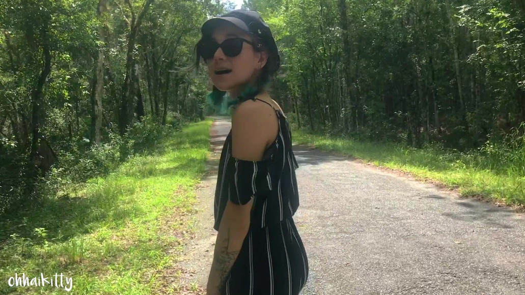 My bae & i were driving along the road when i reallllllllllly needed to pee; i was desperate! So, we stopped on the side of the road and got out of the car. Bae walked behind me & followed me down the road to a tree that i thought i could be a little sneaky behind, but i was still very visible by the road! I pulled the shorts on my romper to the side to expose my hair bush! When i started peeing, a car started driving by, so i had to stop my pee stream & cover my pussy back up! When the car left, i started peeing again! It felt SO good and i was so relieved!!! I love peeing outside in nature!