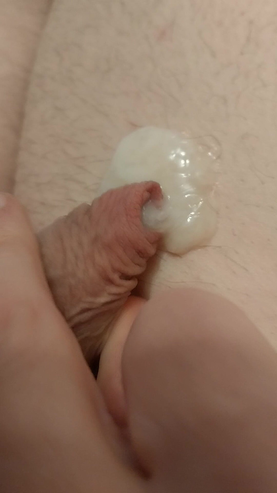 Kelentit kecil memancut mani dalam seluar dalam merah jambu