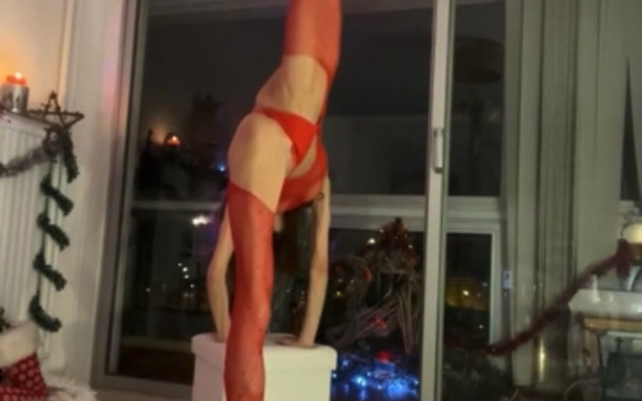 Red fishnet dancer’s body I’m not really dressed to begin with And my nipples are showing Between the openings