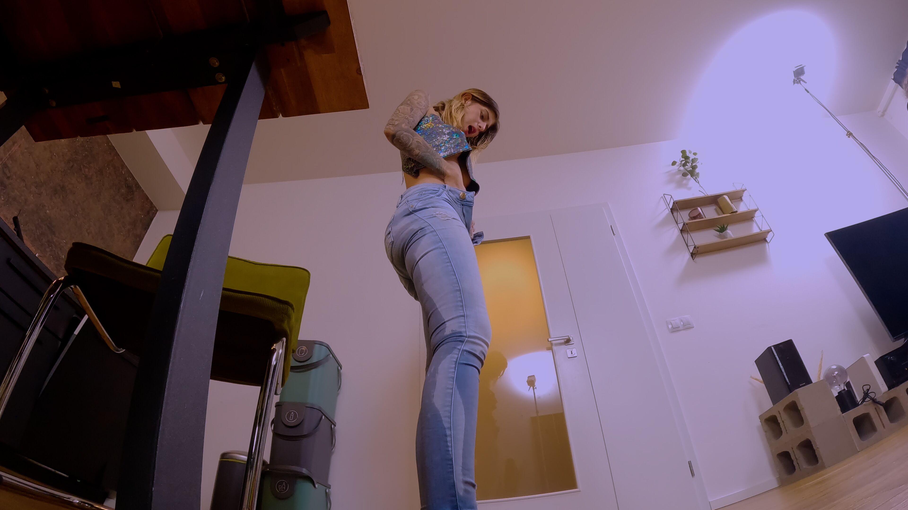 Hot and sexy gilf Melissa Johnson was having a nice day in Prague, walking around, enjoying her self when suddenly she had an urge to pee ... She was next to the river and the only thing she could do is to wet her self, jeans, shoes ... and walk till home totally wet ...
