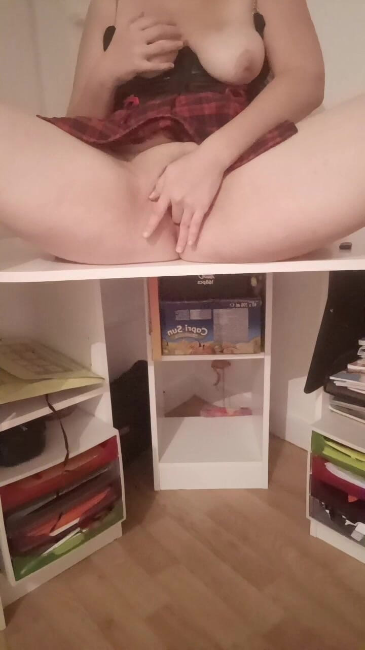 I'm in a little mini-skirt outfit with my big ass and my big breasts, I love to pleasure myself with my big 25 cm dildo.
