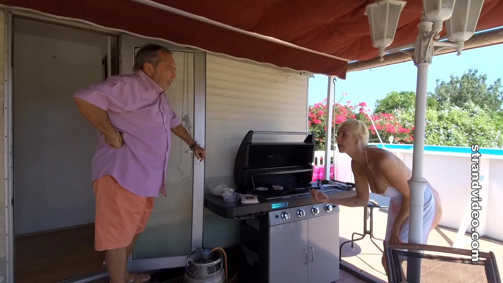 Meg is out in Spain to help Mr Stern compile his cook book, she says she is an expert with the BBQ. It soon turns out that she is nothing of the sort, not even able to light it or to make a hamburger. Mr Stern is not best pleased and gets his favourite paddle to work and uses it till her bare bottom is a bright shade of red.