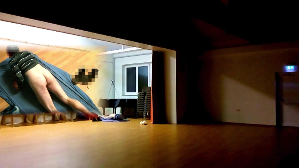 I do a very Quick risky Hump Masturbation in a Music hall 30 minutes before the Musicians meet for practice.