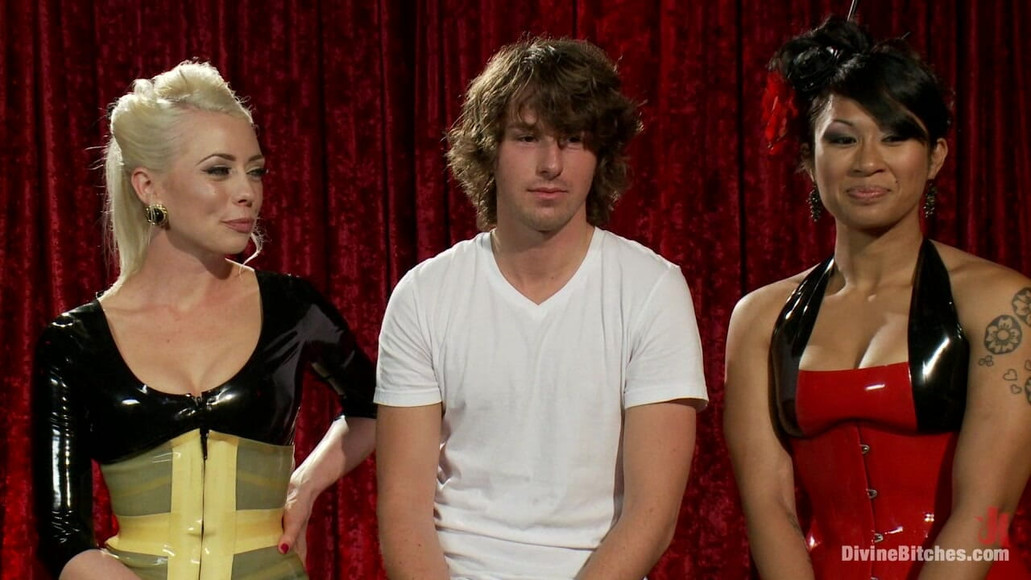 Clothed Female Naked Male -noun One-sided male nudity is considered a form of sexual objectification of men whereby the male assumes the subservient sex role. Maitresse Madeline invites Mistress Lorelei Lee and DragonLily to her theater for a little entertainment Divine Bitches Style! Barney is a Californian surfer boy who has dreamed of being dominated by three gorgeous women and now he gets his chance! This whole shoot is centered around CFNM; clothed female naked male. The objective is that Barney is denied the sexual pleasure of seeing the women in the same state of undress bringing him further into helpless submissiveness. He’s cock and balls are put in the cock stock and he’s whipped while the women cheer from the crowd. Madeline uses her teasing skills to get his cock dripping with excitement only to deny him by request from the rowdy audience. The women strap-on ass fuck Barney and spank his little ass. Then all three dominatrices join in teasin