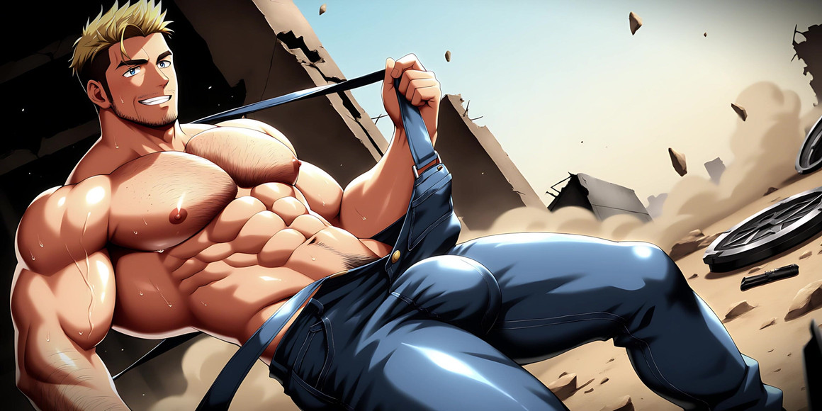 AI sexy softcore video featuring shirtless hunks showing off their big bulges. No explicit cocks or cumshot here, just teasing handsome men with big muscles, hairy chests, and packages hiding their big dicks.