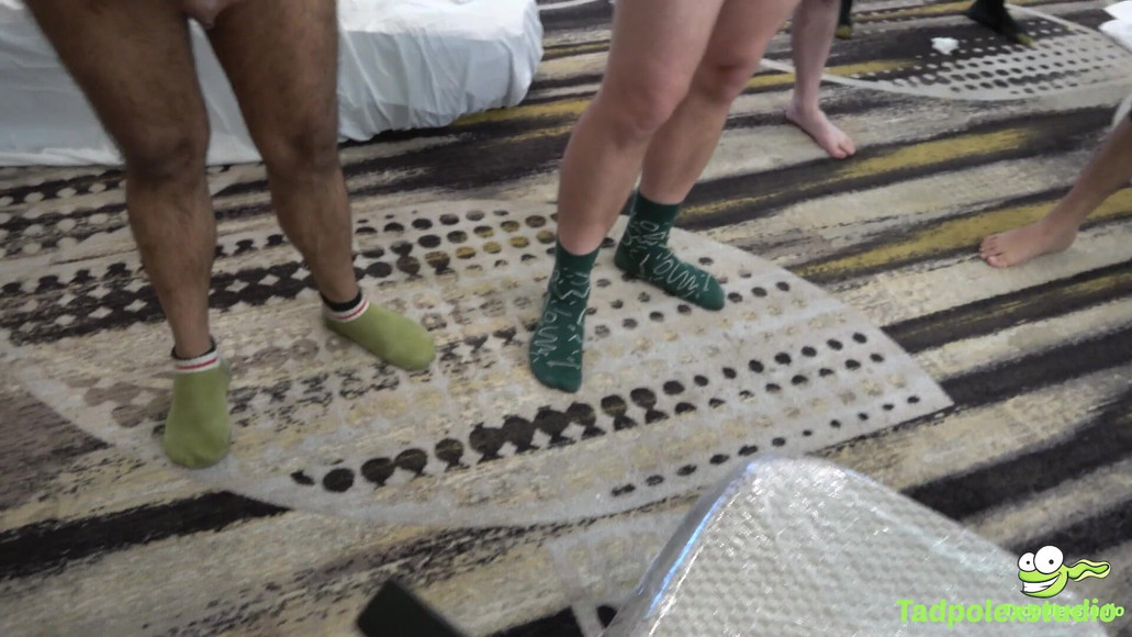 Wisconsin Tiff finishing, fluffing a gangbang, sucking cock for all before she gets her turn and gets gangbanged hard by the crew.