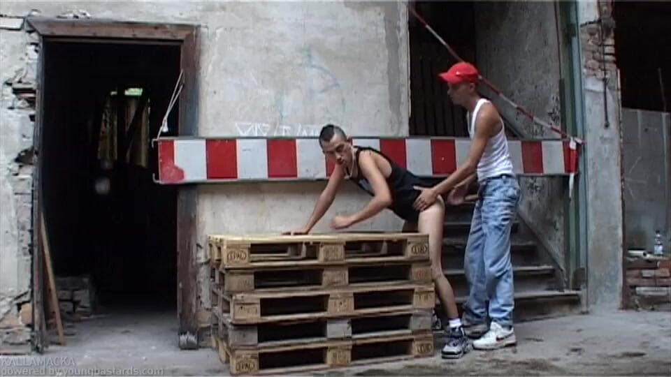 In a house scheduled for demolition, dominant bloke Rado fucks the brains out of punk boy Mickael. The little rascal has to lick his white Nikes, then he gets Rados huge tool into his face and ass.