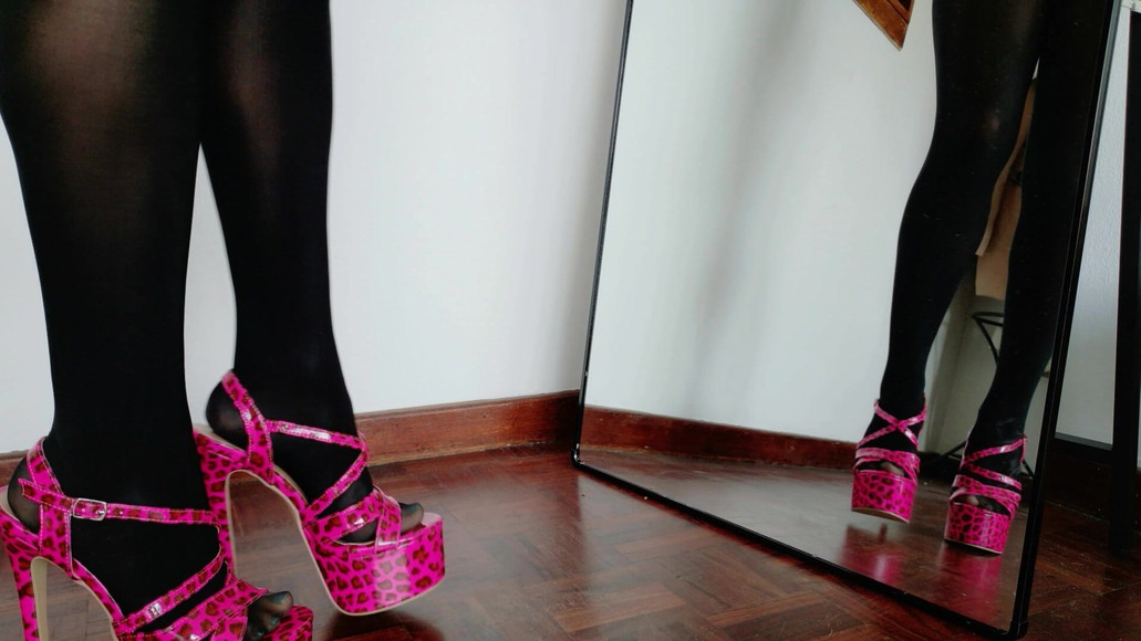 Which Heels Look Best? We have four options! 1. Beige Pointy Steve Madden Stilettos 2. Pink Leopard Print Strappy Platform Stilettos 3. Steve Madden Block Heels 4. Really Really High Thin Stilettos I'm feeling the thin stilettos in this one....