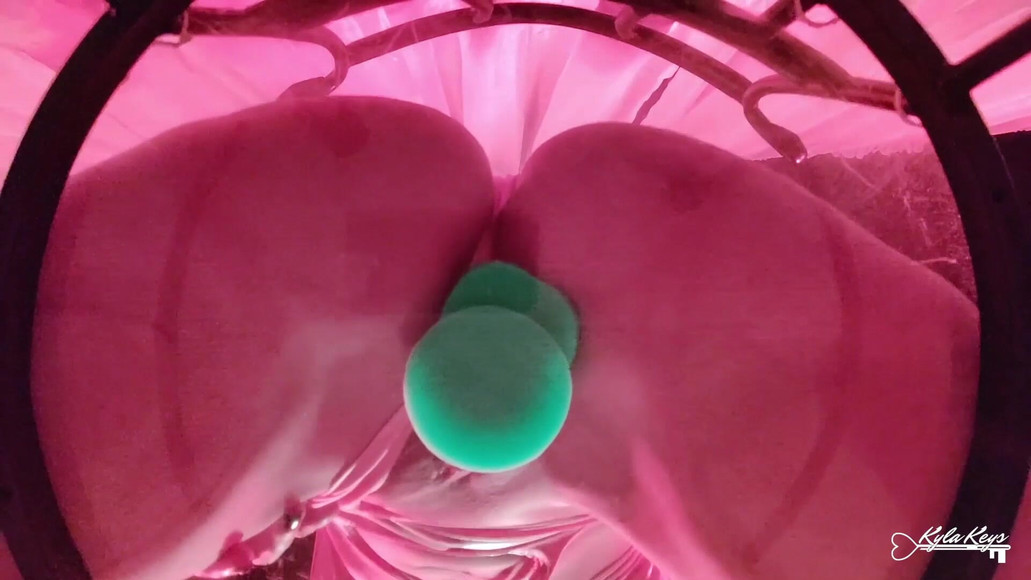 One big green suction dildo plus one clear bottom chair equals plenty of orgasms.