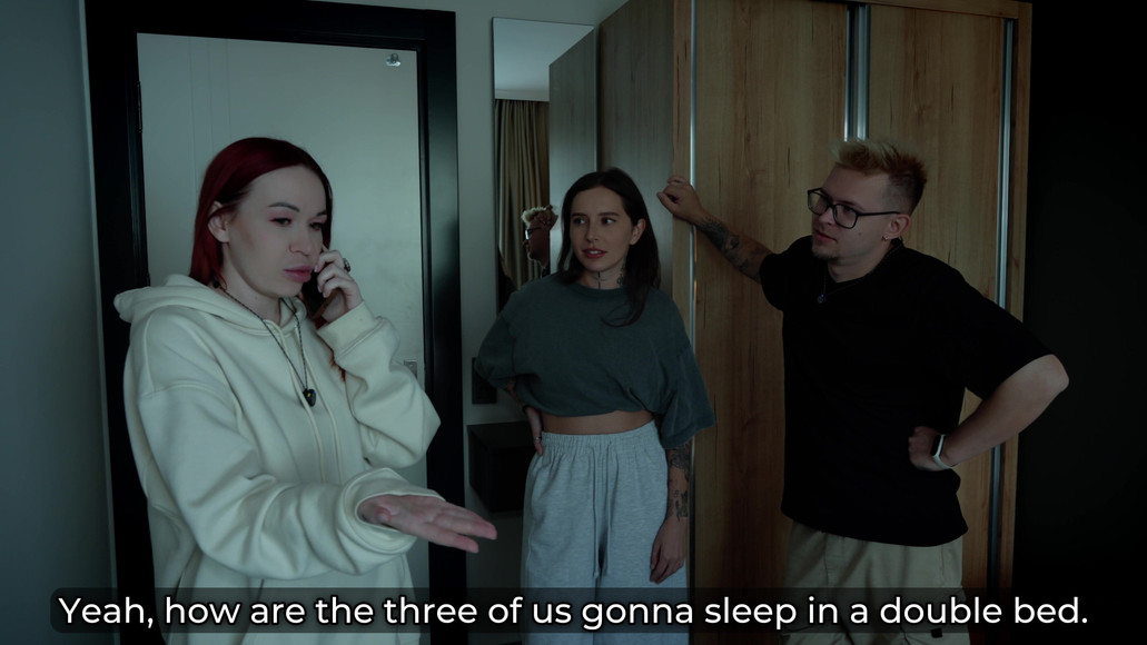 Окунитесь в скандальную авантюру в гостиничном номере, которая слишком горяча, чтобы выдержать! Знойная рыжеволосая мачеха, ее падчерица с великолепной натуральной грудью и сексуальной татуировкой, и похотливый пасынок регистрируются в отеле, только чтобы обнаружить, что они застряли в одной кровати. Искры летят, когда сводные брат и сестра планируют жаркий секс, но присутствие их мачехи добавляет захватывающий поворот. По мере того, как ночь становится жарче, страстные поцелуи и дразнящие прикосновения зажигаются, а пасынок жадно исследует изгибы своей сводной сестры. Дело принимает пикантный оборот, когда мачеха застает их, тонко меняющихся местами под одеялом. В обжигающей путанице пасынок неосознанно предается запретным удовольствиям своей мачехи, что приводит к дикой сессии ложек и взрывному финалу на лицо, который ошеломляет всех. С естественной красотой, необузданным желанием и табуированным гостиничным возней, это видео вызывает захватывающее волнение.