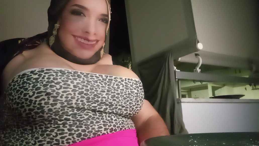I'm happily playing with my pussy outside on the balcony, 8 o'clock in the morning. I'm wearing nice tights with my fuchsia mini skirt and I don't care if the neighbors are looking at me or not. I'm very horny, not that much, but I'm playing with my pussy really nicely and I'm cumming.