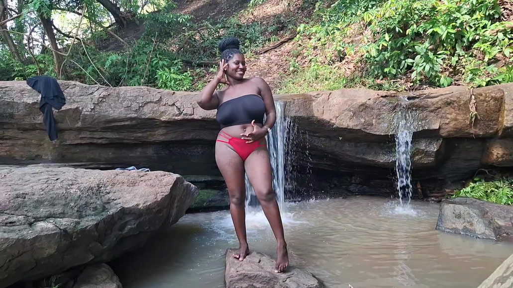 Lost in the waterfall, far from everything, excited, searching for a big, better dick.
