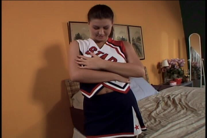 Sarah Stone is a beautiful girl with the most amazing tits wakes up and gets in her cheerleader uniform. She loves stuffing a vibrator in her panties and letting it do its nagic. That is not enough so she rides a fucking machine and adds a vibrator to her clit for a huge orgasms.