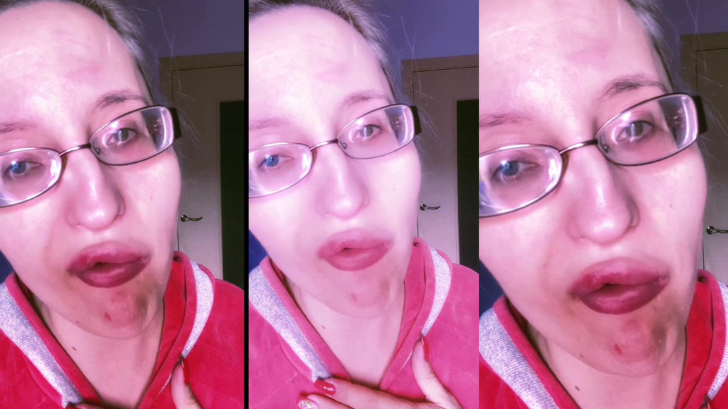 ASMR Red Lipstick and Mini Cake Eating listen in headphones