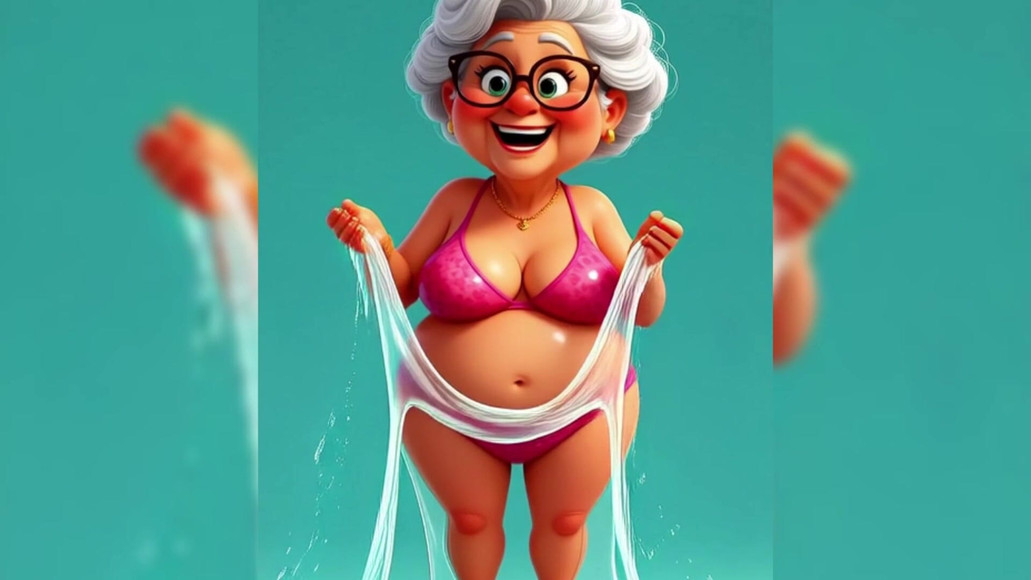 3D style art brings these bikini granny babes to life. Covered in a sticky mess. They are very teasing not letting you see them fully naked but still sexy and curvy in their swimsuits. Generated with AI.