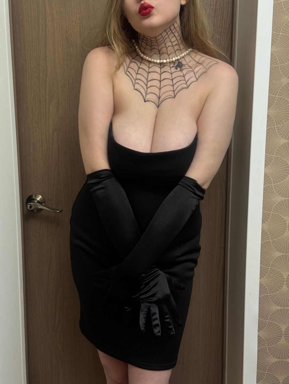 I dressed up in a beautiful dress and drew a spider web, and fucked him with my big tits.