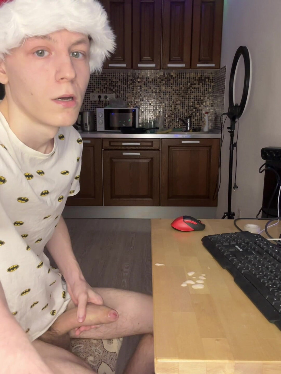 I’m an 18-year-old skinny twink with a massive young cock that barely fits in my hand. Watch this amateur twink strip totally naked. Grab that big cock and start a hot handjob. Slow strokes from the base up to the shiny head. Then faster and faster till the veins bulge and my balls slap against my thigh. My abs flex tight. My back arches. And boom-huge gay cumshot! Thick ropes of cum blast across my chest. Drip down my abs. And I milk out the last drops onto my fingers. Homemade solo from a cute gay boy who knows how to edge himself to explosion.
