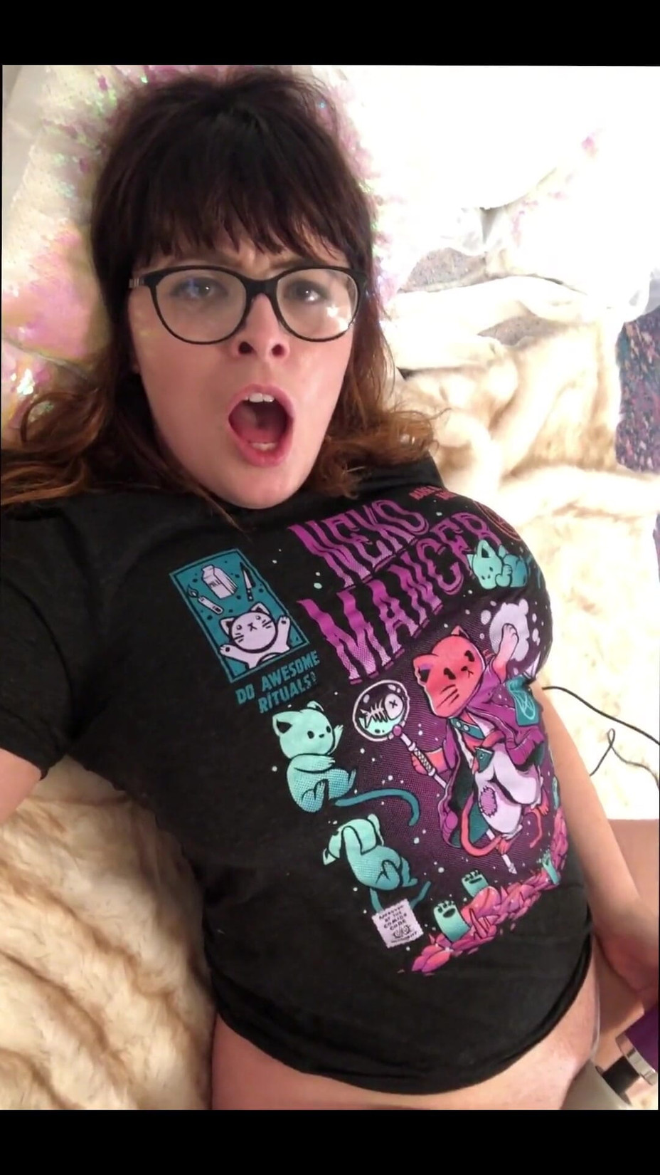 Today's throwback has dressed down and cute Bea. I dance around, shake my ass, show off my huge tits, and start sucking off one of my dildos. It get's better though. I attach said dildo to my fucking machine and continue to suck it. Naturally, that leads to me fucking it in a few positions, like doggy and missionary and some GREAT close ups. Finally, I cum using my wand while being fucked by the machine.