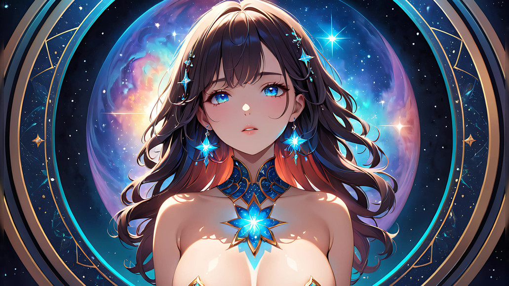 Witness the ethereal calm of a beautiful young woman with soft stardust resting on her cheeks, her face illuminated by a gentle cosmic glow. Her serene expression and the celestial light surrounding her create a dreamy, otherworldly atmosphere filled with quiet wonder. Slideshow videos generated with AI bring this cosmic vision to life, blending fantasy radiance, soft emotion, and star-kissed elegance—perfect for lovers of celestial, magical, and visually enchanting art.
