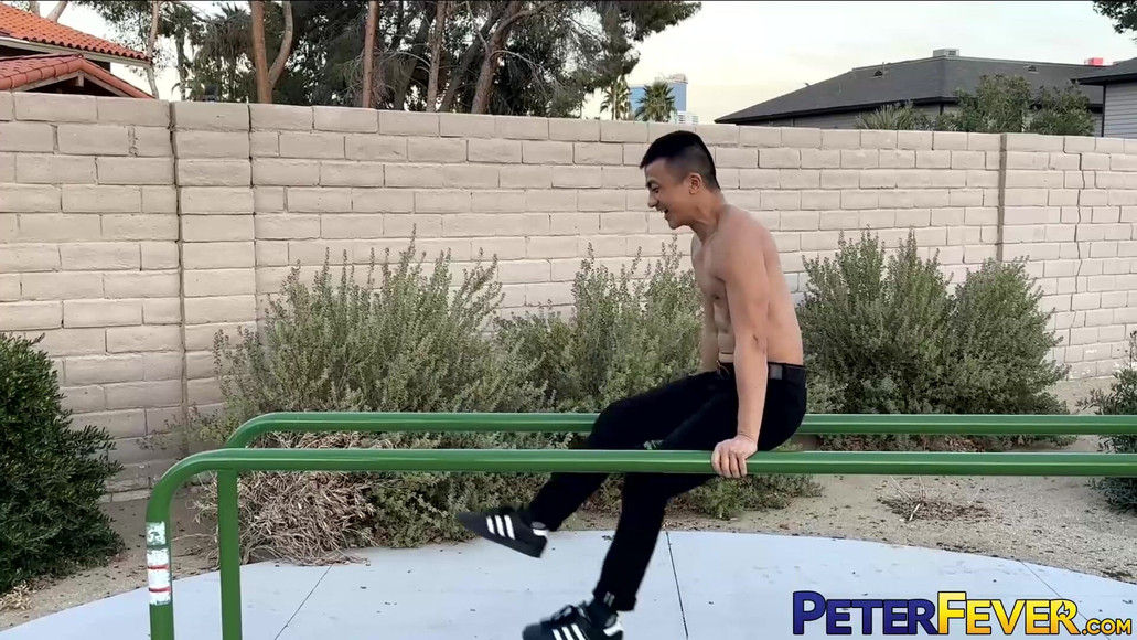 Sexy newcomer Zed Sheng looks amazing with his athletic and firm body, especially when he shows what he's packing in his trousers!