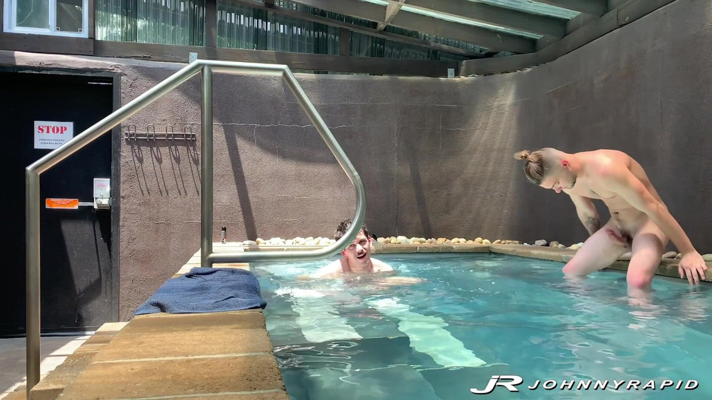 Suns out, buns out! Johnny Rapid gets good head from Jonah Wheeler before pounding him out in an outdoor hot tub! Looking cool in his dark shades, and nothing else, handsome and fit Johnny arrives in the pool naked and playing with his big dick. It's the kind of display that would have any horny dude wanting to play, and you can bet Johan is more than ready to take the obvious offer the new arrival is making.He heads over to take a closer look at that delicious pink meat, and you know Johnny is happy to have it inspected. In moments the delicious dong finds its way between Johan's lips and the mustachioed man delivers the best head he can muster.Clearly, Johan knows how to please a cock, fondling those low hangers while his lips and tongue work along the throbbing muscle. It's a delicious treat, but you know he's in need of more than just a taste.Tempting muscled hunk Johnny with his eager ass on display he's soon being banged from behind at the edge of the pool, with Johnny's curved and