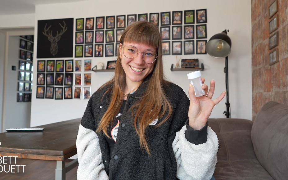 I went to the gynecologist to have my IUD removed. When I got home, I wanted to fuck right away without contraception. My boyfriend didn't know about his luck yet. I just told him to get out the camera and wait for me. So I surprised him with the IUD in my hand. We were both extremely excited and could hardly believe we were about to fuck without contraception for the first time. Nervously, I rode his cock until his huge load of cum pumped into my pussy, completely unprotected.