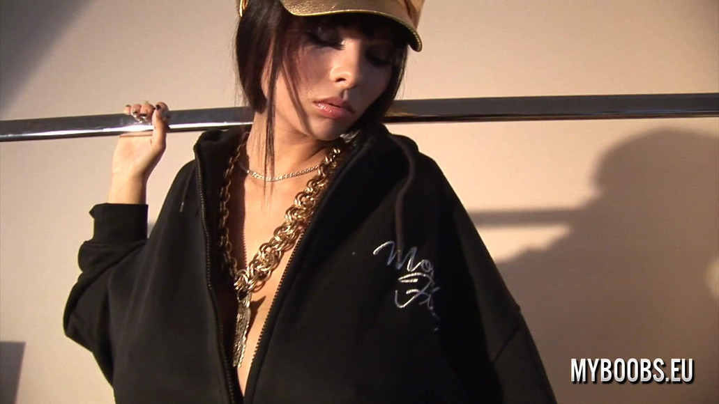 Big tits babe in latex pants and golf chain strip and masturbate in hip hop style