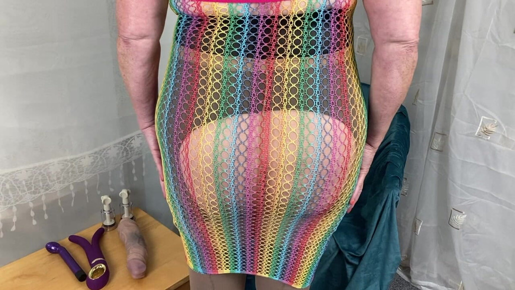 Mrs Mature Feet is showing you all a little glimpse of her open crotch girdle, do you like it, if you do let her know and she will show you more lots more. She also has her Rainbow dress on which she takes on holiday