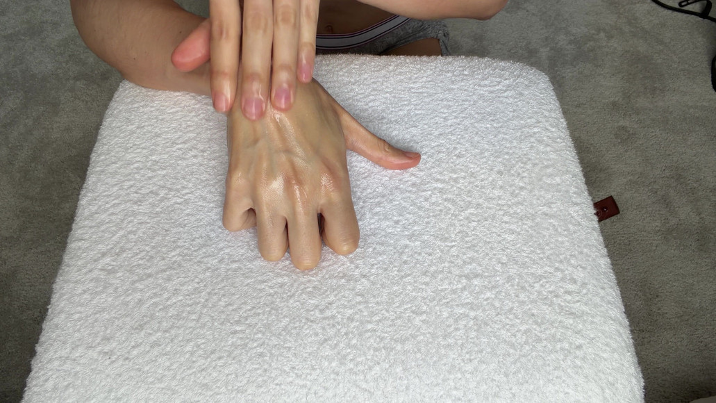 Oily hand worship w/gentle fem domme (GFD) narrative … NSFW because my tits make a quick appearance & I didn’t want to truncate the video ;) no face, just hands in need of a massage