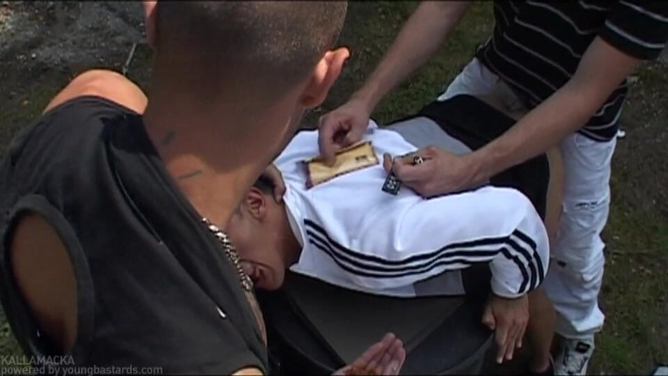 Timo, Ivan and Tony, have nothing to do and chill out. Talking about their cool clothes makes them horny. Soon the cocks a out and swelling and it is clear that Tony is going to be the one to open his holes.