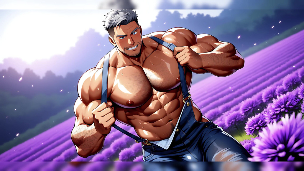 Gorgeous men with huge muscles. Made with AI! It's a mix between cartoon and anime styling. They show off their upper bodies and tease with their big bulges.