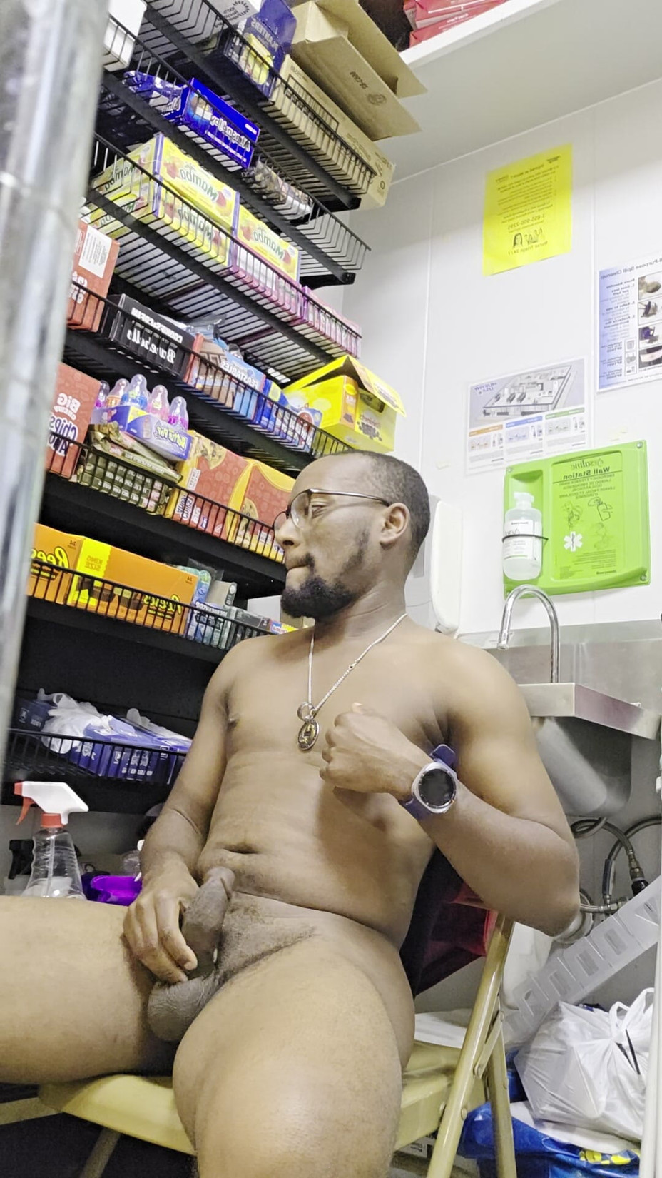 Last Shift at my second job just decided to strip down with the door open let a load loose