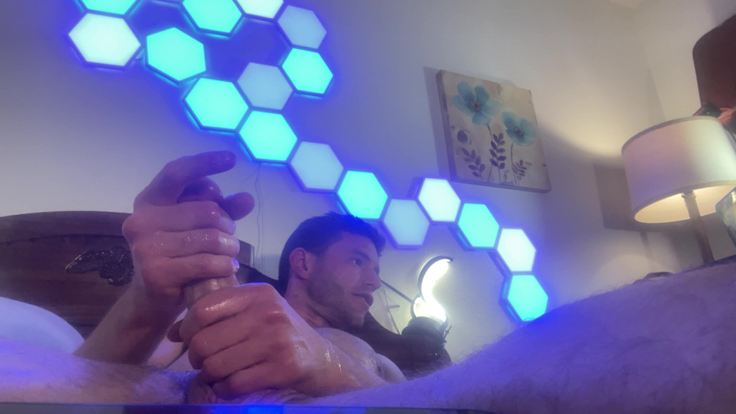 Lying back on the bed, legs spread wide with the camera perfectly positioned between my thighs so you get the ultimate POV of my thick, veiny monster cock throbbing in my grip. I’m rock hard, dripping pre-cum, using both hands to stroke this massive dick slow and deep while I talk filthy to you the whole time, telling you exactly how bad I need to blow this huge load. Watch every inch slide through my fists, balls tightening, veins popping, until I can’t hold back anymore. I grunt loud and primal as rope after thick rope erupts all over my abs and chest, panting in total relief while my cock keeps pulsing and leaking. Full 10/10 cumshot, you’ll replay the grunts and that final explosion over and over.
