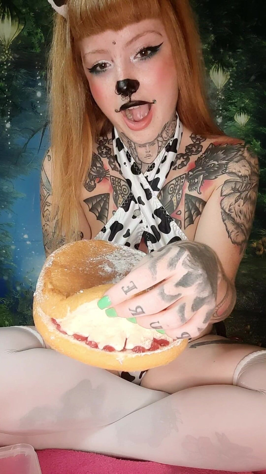 Want to see how dirty your good little slut can get with her desserts? I Starr off by teasing you showing you what treats I have in store;) The cold jello feels so good between my toes andd leaves my feet sooo wet!! I then crush the creamy cake with my fat ass,cream getting all up in my pussy ,really lubing me right up!! I stuff my cheeks full with the delicious cake that has my sweet juices allover! It tastes soooo good! I've made such a mess, pouring jello,cream and crushed up ripe banana allover my perfect tits, squishy belly and pussy! I'm ready to take your cock
