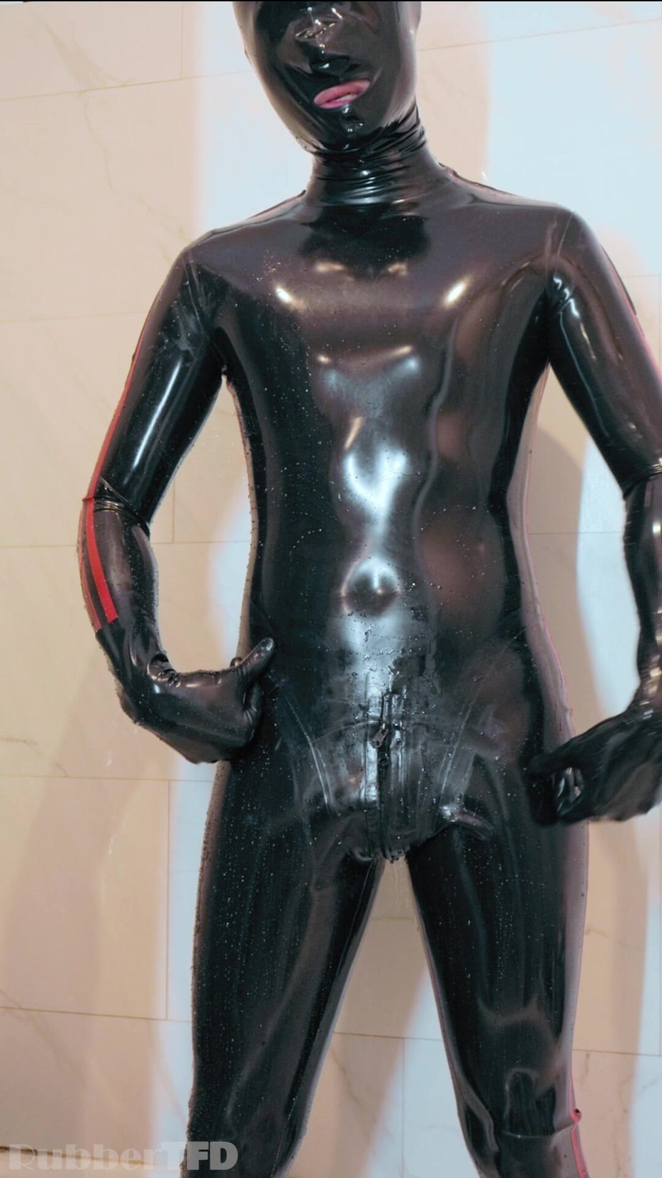 More clips of me in a shower after playing in full rubber. Though not much actions but very sensual. Nipple plays and chastity belt are in this series!