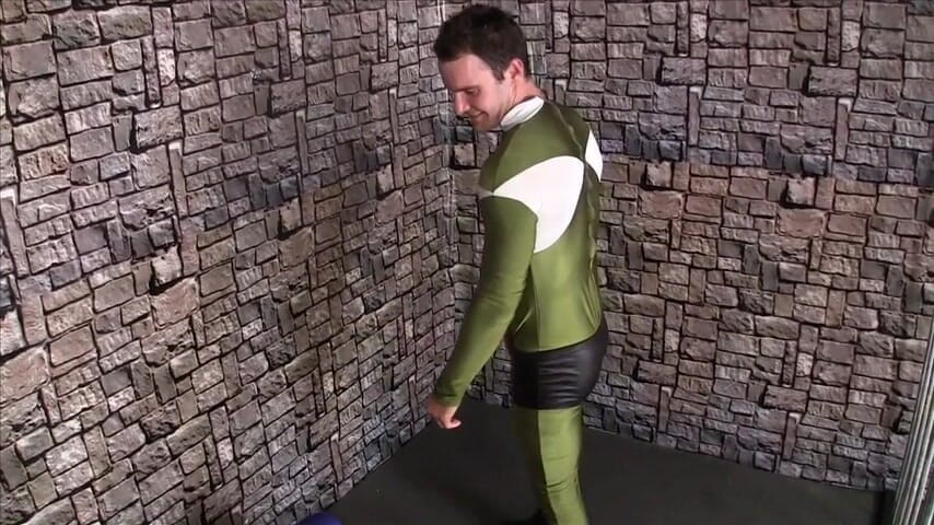 Superman is still locked in kryptonite chastity by the evil Dr Kincade. He has been called back to the evil doctor's warehouse. Superman demands to be released, but the Doctor has power over him, and just laughs, and smacks him in the nuts. The two grapple a bit. Superman is very surprised at the evil doctor's strength (who had earlier made a serum from the super sperm he had milked from Superman in the previous clip...) The evil Doctor toys with the man of steel, while in Chastity, then releases him from chastity, but continues to break his balls. Superman fights back, and loses his cape in the process, so the Doctor humiliates him further and eventually drags him away by his balls... The evil Dr Kincade has gained power over Superman through a serum he made with his cum, and Superman's powers are weakened by his recent exposure to kryptonite... now the evil Doctor is dragging Superman into a cell in his dungeon by his balls. He throws the man of steel to the ground, leaves him in the